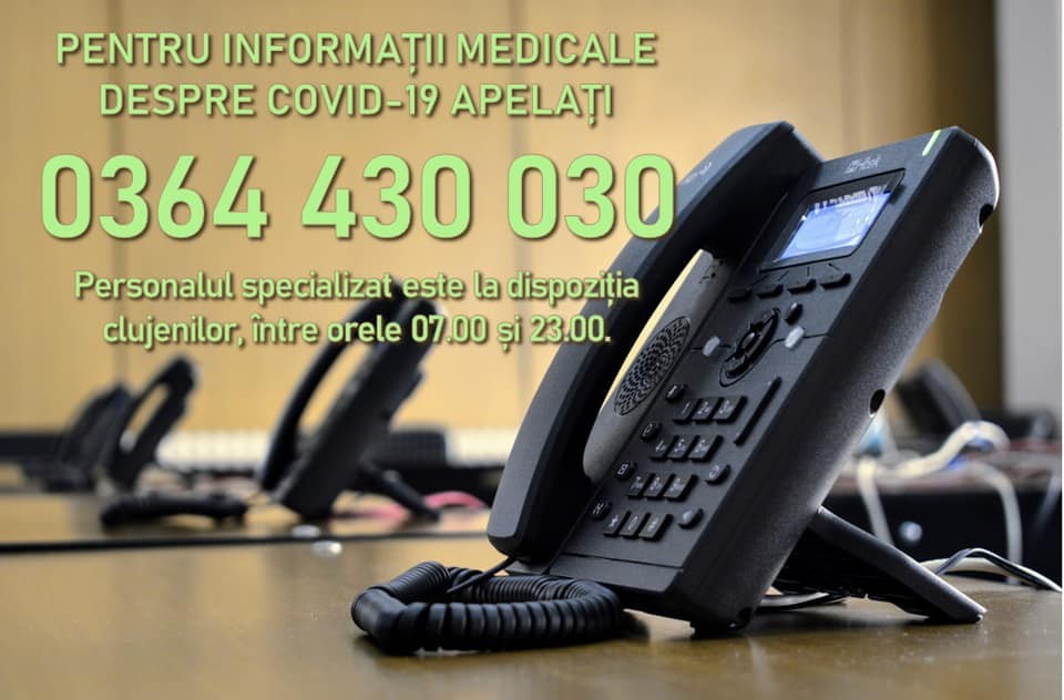 Începând de astăzi, este deschisă linia telefonică 0364 430 030, pentru cetățenii din județul Cluj care doresc informații despre COVID-19.